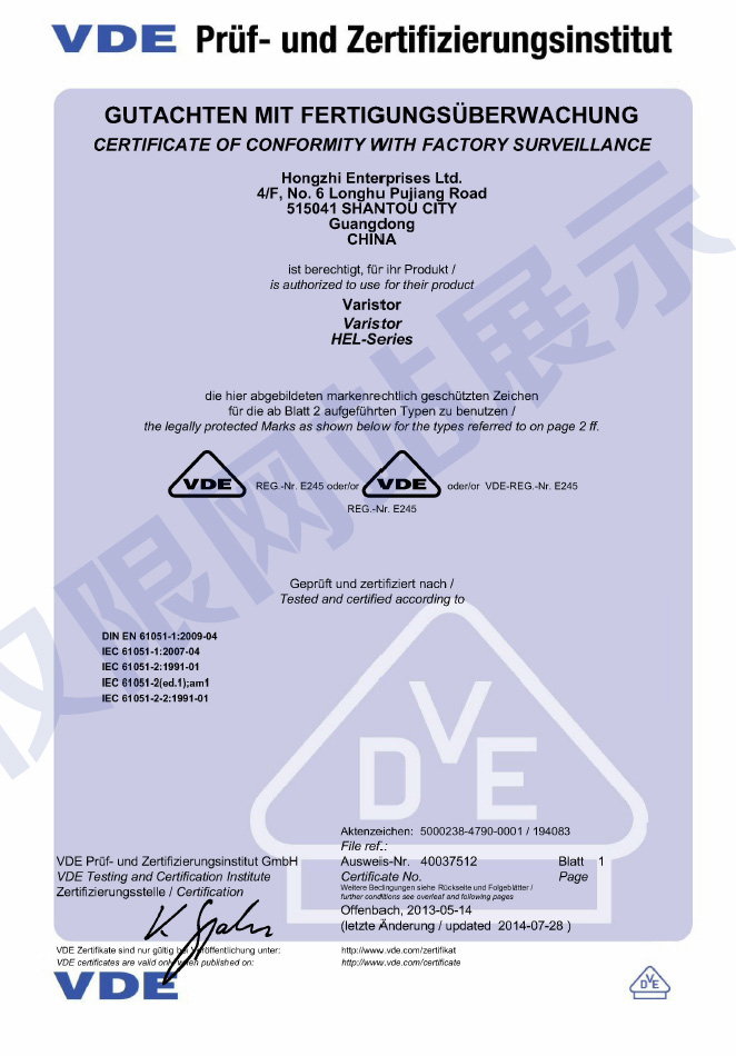 廣東鴻志電子科技有限公司成立于1993年,位于美麗的海濱城市汕頭,現(xiàn)已發(fā)展成為元器件制造集團(tuán)企業(yè),生產(chǎn)壓敏電阻、NTC熱敏電阻、陶瓷電容和金屬化薄膜電容,通過(guò)了ISO9001質(zhì)量體系認(rèn)證和ISO14001環(huán)境體系認(rèn)證,以及IATF16949汽車(chē)產(chǎn)品質(zhì)量體系認(rèn)證...
